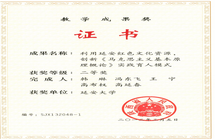 利用延安红色文化资源,创新《马克思主义基本原理概论》实践育人模式——省级教学成果奖二等奖