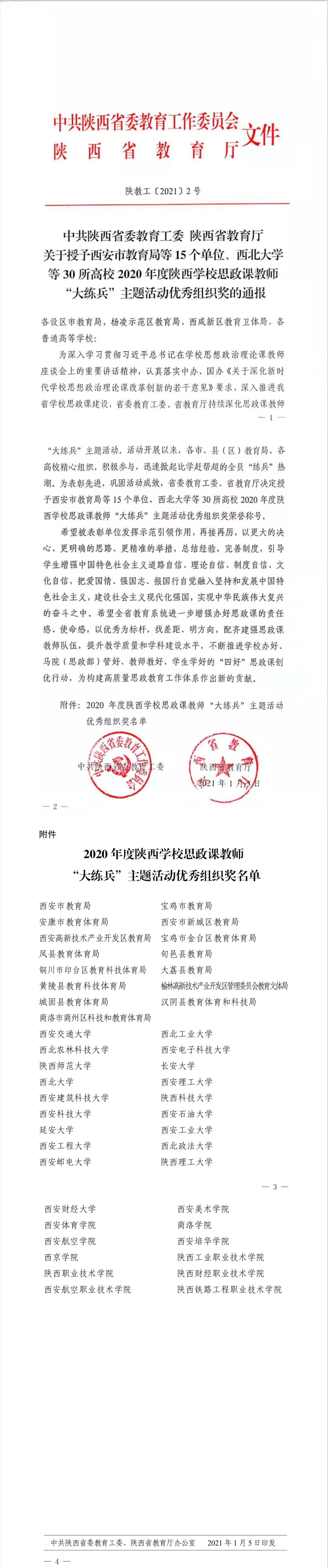 关于2020年度陕西学校思政课教师“大练兵”主题活动优秀组织奖的通报