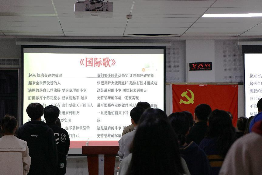 入党积极分子代表李杨蕾同学发言。她讲述了党的百年奋斗征程,并号召入党积极分子坚定信念,不断学习党的创新理论和基本知识,志存高远,锐意进取,实干担当,增强综合素质。