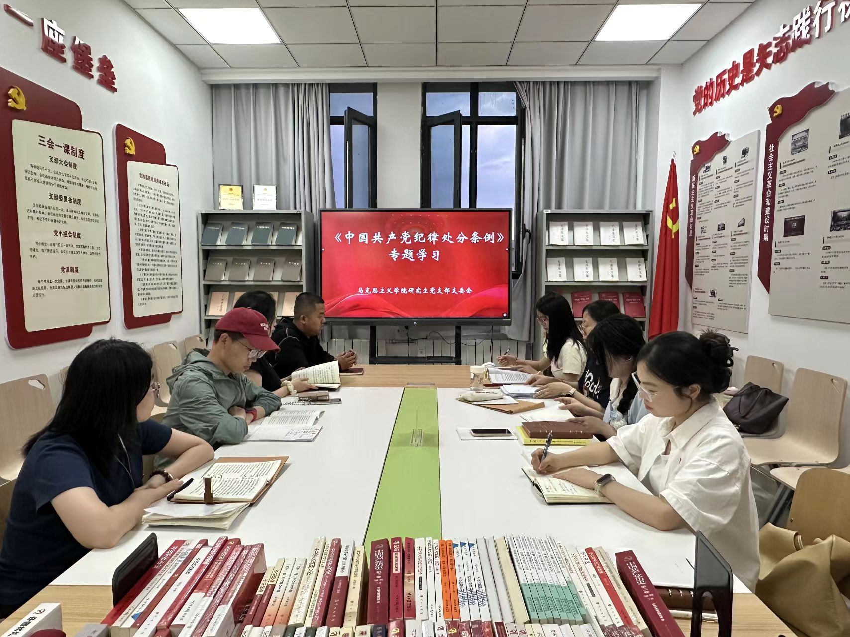 研究生党支部委员在学院410党建活动室开展了《中国共产党纪律处分条例》第三次专题学习会。研究生党支部书记苗玉园老师及全体支委参加会议,会议由研究生党支部副书记田旭阳主持。