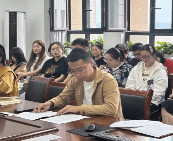 学生党支部于9月7日在学院312会议室召开“学习贯彻习近平新时代中国特色社会主义思想主题教育”专题组织生活会。团委书记郭忠義,辅导员苗玉园,研究生、本科生党支部全体党员、预备党员参加会议。会议由郭忠義老师主持。