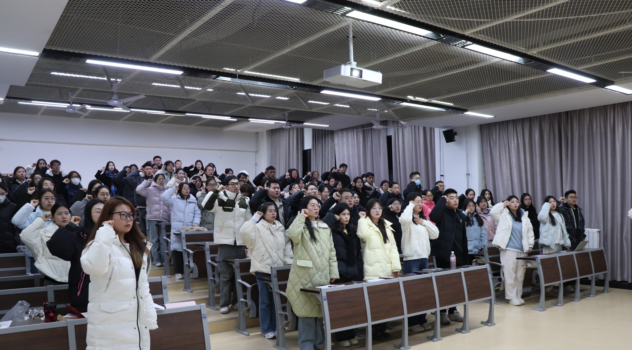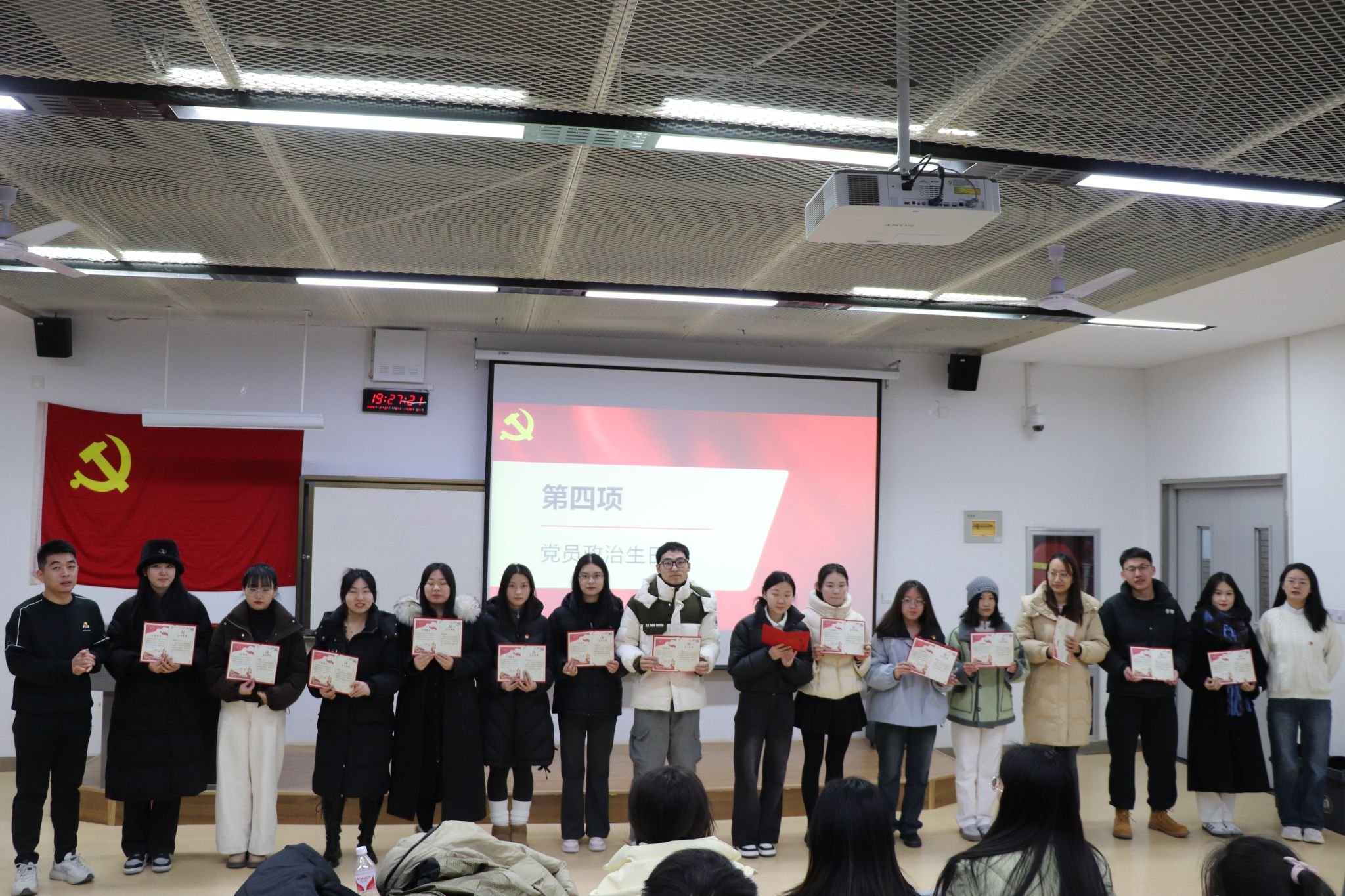 研究生党支部书记苗玉园书记、本科生党支部书记贺宁宁为老党员颁发政治生日贺卡,随后,全体党员面向党旗庄严宣誓。