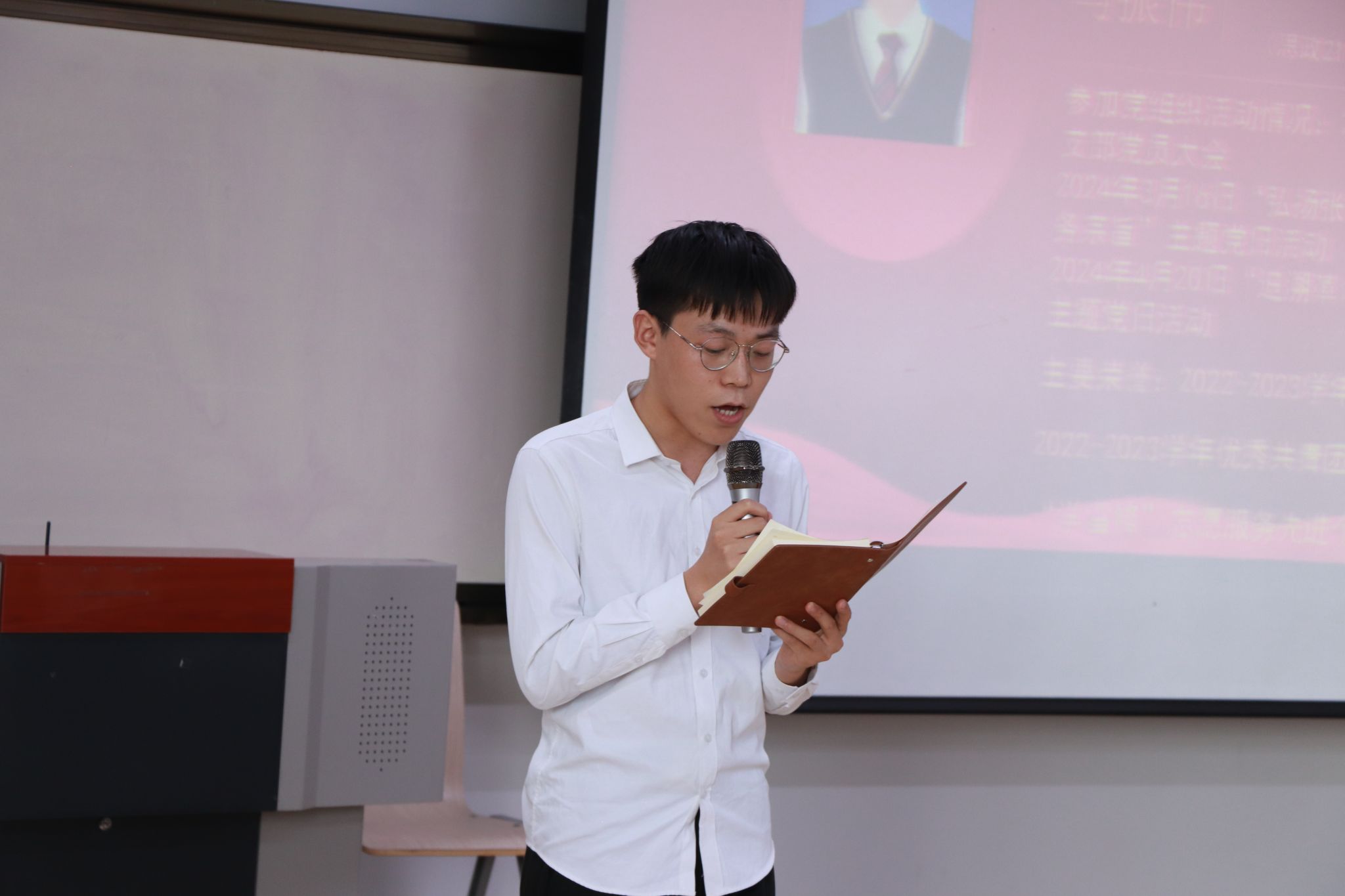 会议伊始,全体党员奏唱国际歌。随后,学院25名预备党员分别从对党的认识、入党动机、个人现实表现、家庭和主要社会关系情况及今后努力的方向等方面向党组织汇报了个人情况。他们表示,今后将以党员标准严格要求自己,不断提升自己的专业技能和综合素质,加强党性修养,践行全心全意为人民服务的宗旨。