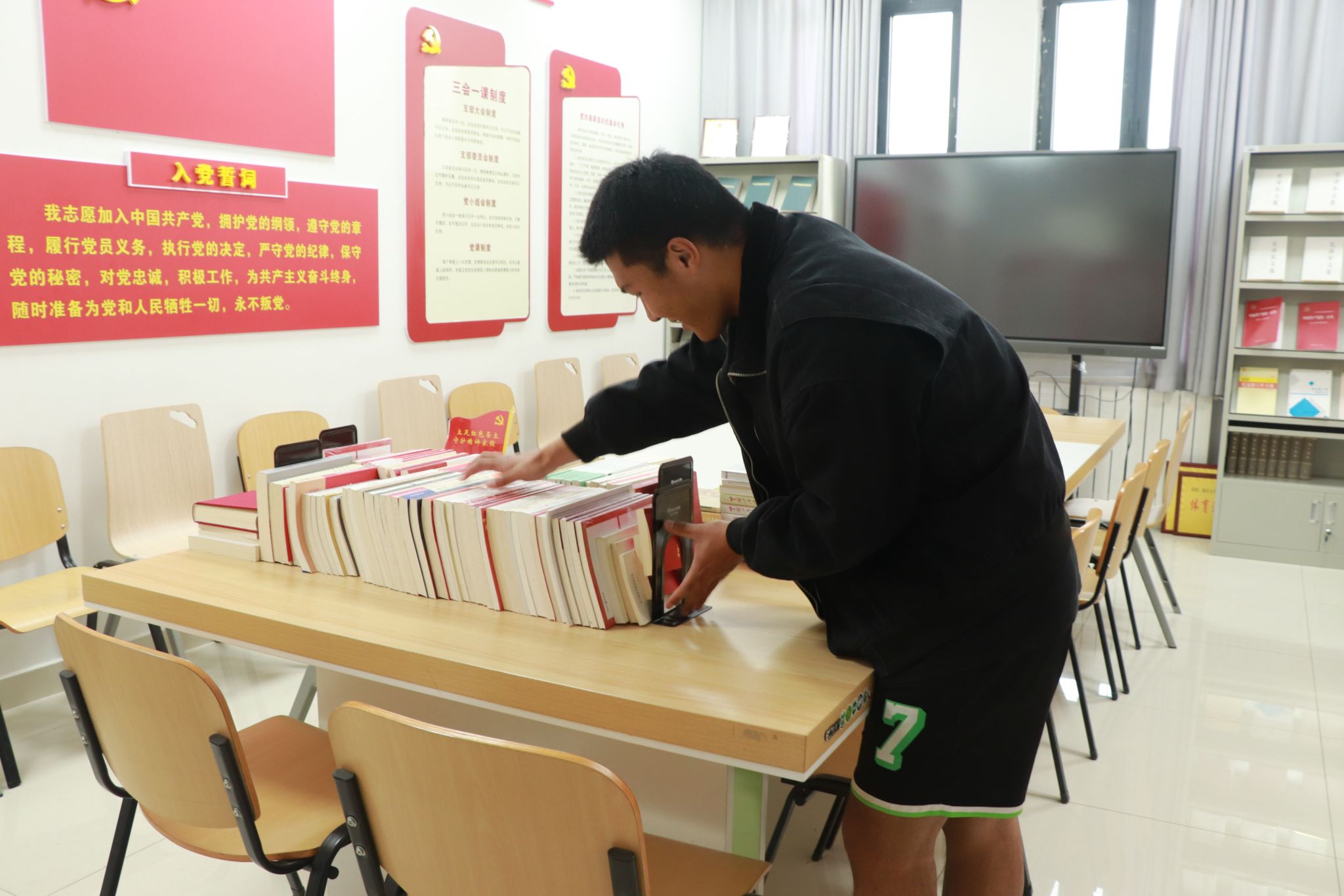 活动期间,入党积极分子相互配合,分工明确,以积极的态度、饱满的热情投入到劳动中。分组对学院报告厅、红色阅览室、会议室、党建活动室和成果展示室进行了打扫和整理。大家积极劳动,充分发扬了新时代大学生吃苦耐劳的优良作风。
