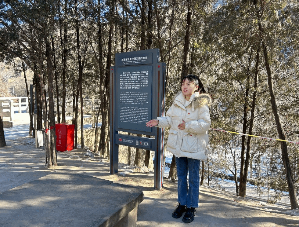 研究生党支部张环环、阮雯婷同志分别在毛主席与美国记者斯特朗谈话的小石桌前,讲述了党史故事“一切反动派都是纸老虎”和“延安窑洞对”,并号召青年学生要深刻领悟“伟大工程”的时代内涵,以革命先烈为榜样,筑牢信仰之基,在今后的学习工作中发扬老一辈革命家谦虚谨慎、不骄不躁、艰苦奋斗的优良作风,做延安精神的传承者、弘扬者、践行者。