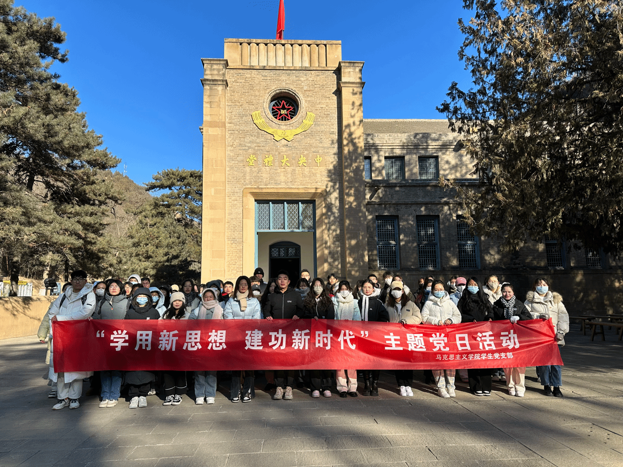在杨家岭革命旧址开展了“学用新思想 建功新时代”主题党日活动。学院研究生党支部书记苗玉园、本科生党支部书记贺宁宁、“用延安精神强党建‘1261’示范党支部项目”成员及第62、63期入党积极分子参加了此次活动。活动由刘佳佳主持。