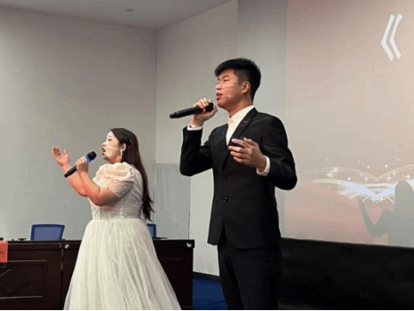 中场休息,由鲁艺学院纪谢宇、唐铭同学演唱歌曲《不忘初心》,嘹亮饱满的歌声引发观众席的阵阵掌声。