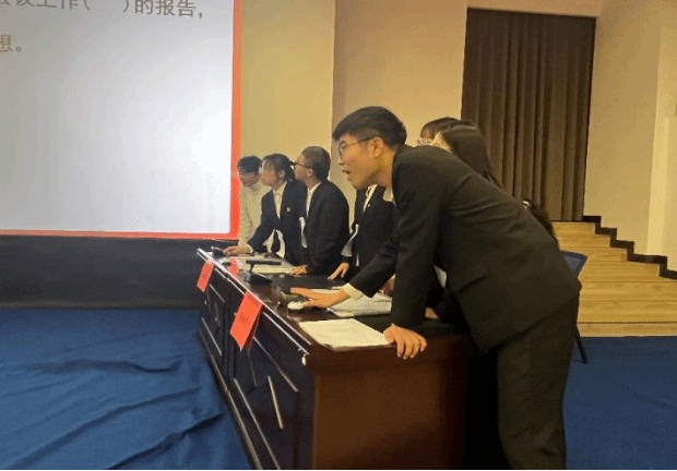 在大学生活动中心一楼红色影院报告厅举办“党员学党章 思想放光芒”党史党章知识竞赛决赛。学院副院长刘建华老师、研究生秘书高峰老师、研究生党支部书记苗玉园老师、本科生党支部书记贺宁宁老师及全体学生党员、入党积极分子参加了此次活动,活动由董宇航、陈雨露同学主持。