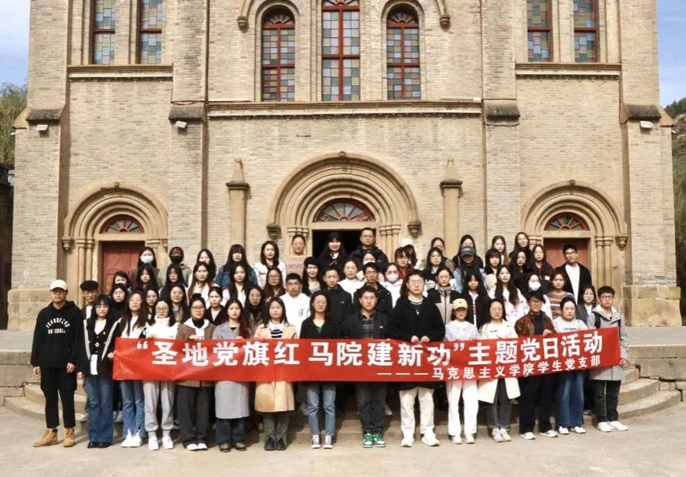 本科生、研究生党支部在延安桥儿沟革命旧址开展“圣地党旗红 马院建新功”主题党日活动,重温了六届六中全会在百年党史中的重要地位,进一步坚定党员理想信念,增强党组织的凝聚力和战斗力。学院辅导员苗玉园及本科生、研究生党支部全体党员参加了此次活动。