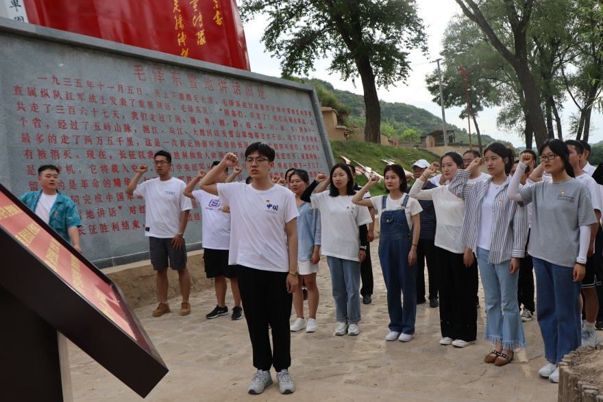 党委赴甘泉县象鼻子湾开展2022届毕业生最后一堂党课——坚守党旗下的信仰。参加本次活动的有学院党委常务副书记张彬老师、常务副院长高布权老师、党委副书记赵老师老师,研究生党支部书记闫莉莉老师及教师、学生党员共计50余人。