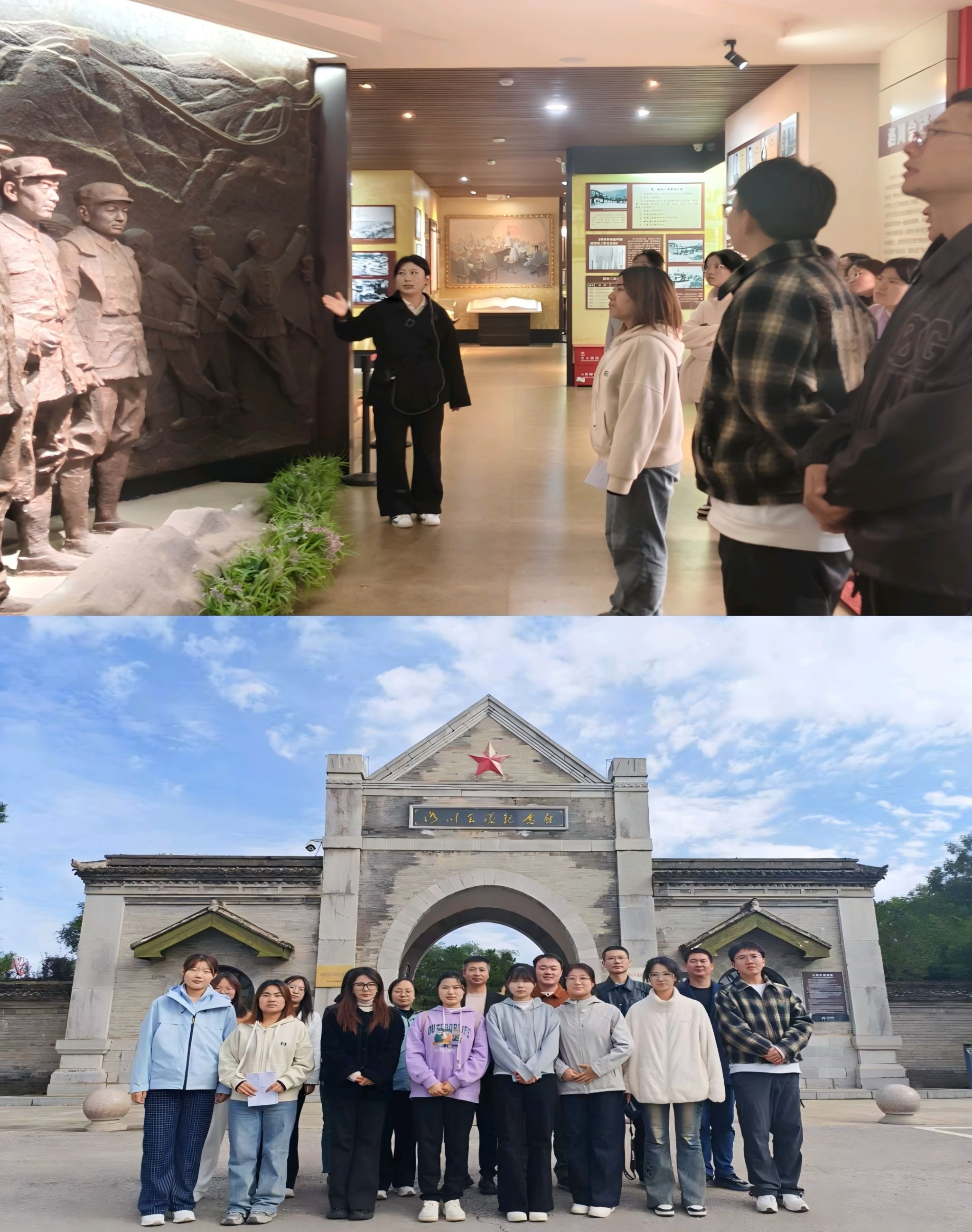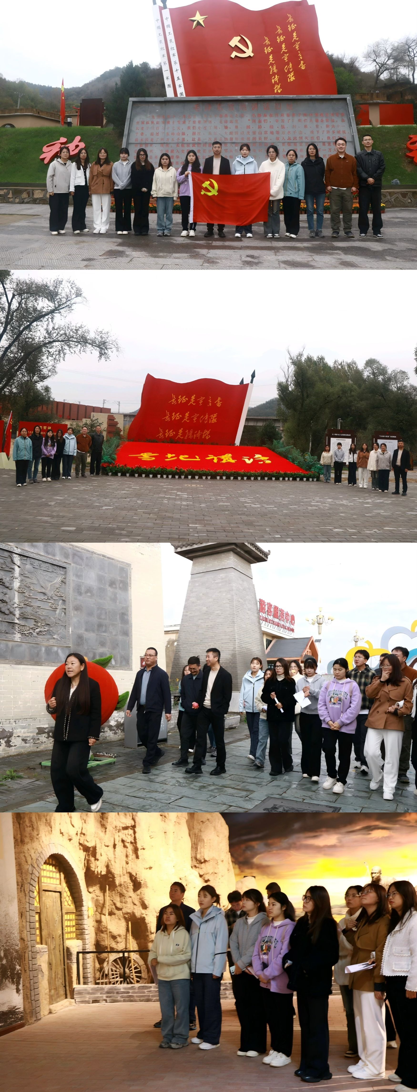 师生一行首先前往洛川会议旧址。在旧址窑洞与纪念馆展厅内,借助珍贵历史照片、实物展品及详实文字资料,1937年洛川会议制定全面抗战路线的重要历史得以清晰呈现。学生们驻足记录、举手提问,党员教师结合史料现场讲解,在互动交流中让课本中的党史知识具象化,帮助全体人员深刻感悟中国共产党在民族危亡时刻的责任与担当。