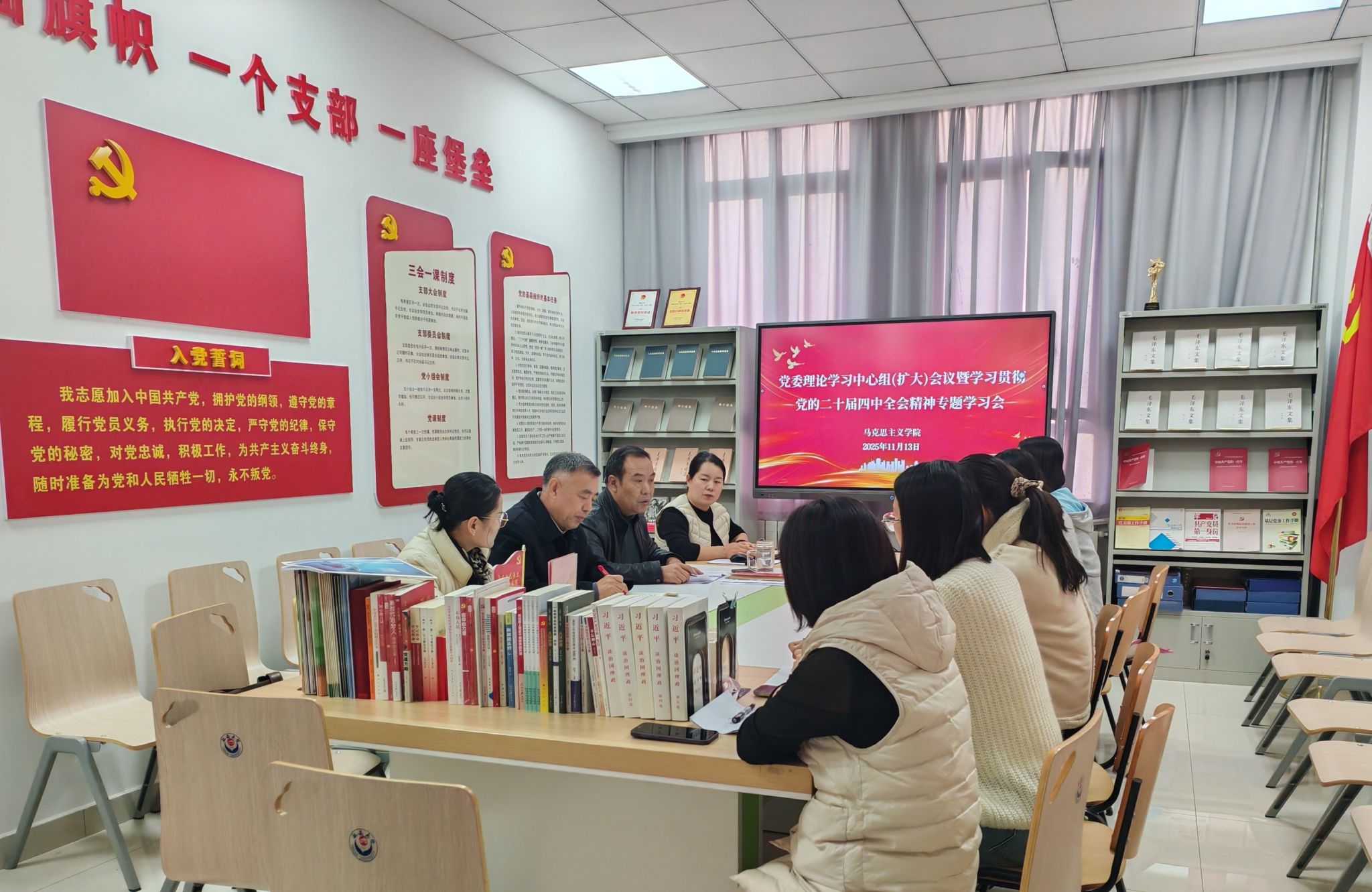 党委在党建活动室召开理论学习中心组(扩大)会议暨学习贯彻党的二十届四中全会精神专题学习会。学院全体领导班子成员、各党支部书记,师生党员代表以及行政人员参加会议。会议由学院党委书记张彬主持。