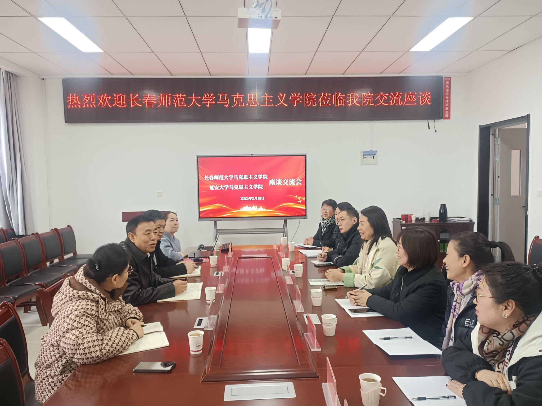 交流座谈,座谈会在学院三楼会议室举行,院长高布权,副院长臧爱绒、刘建华、亢鸽,办公室主任王晓瑜等人参加了会议,会议由高布权院长主持。本次交流活动旨在增进校际合作,共同推动马克思主义理论学科以及思想政治理论课建设高质量发展。