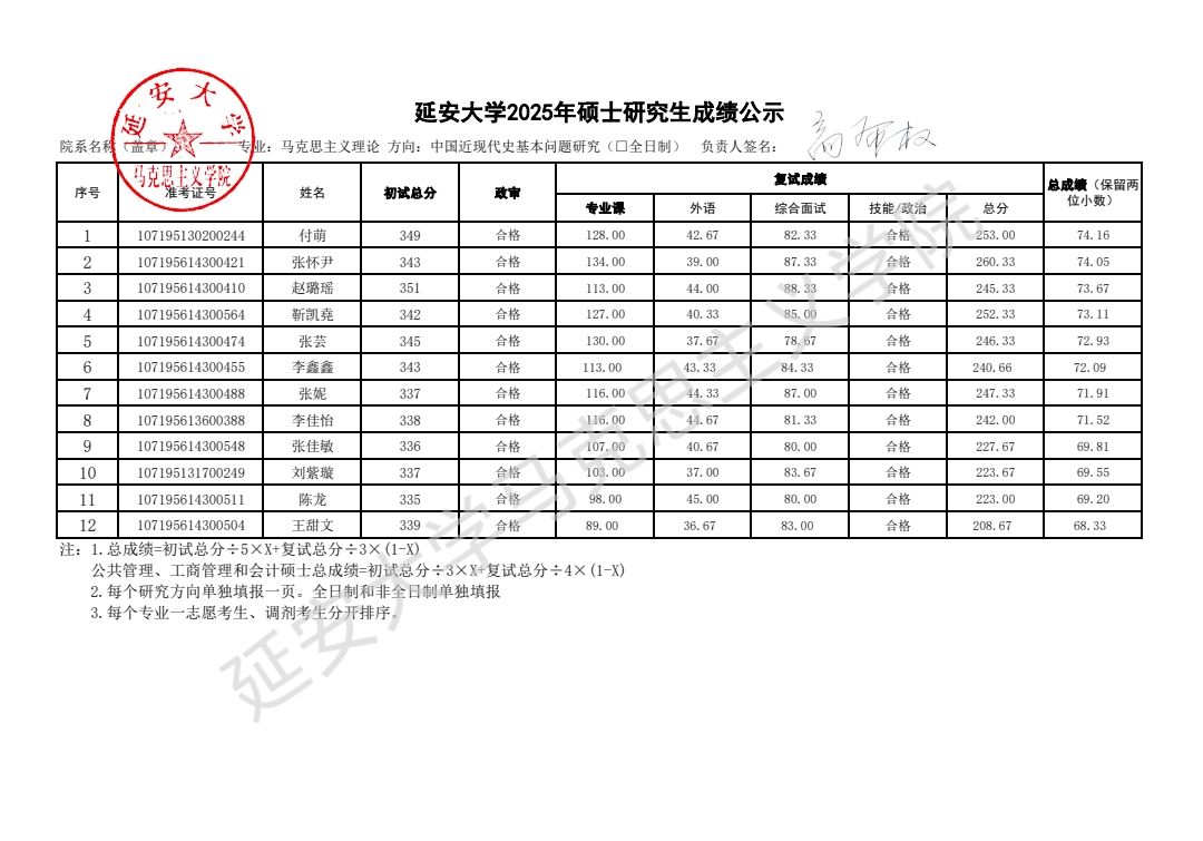 2025年硕士研究生复试工作实施方案,于2025年3月31日的一志愿考生二次复试工作已圆满结束(浩燕芝,考生编号107195531500365,刘颜芳,考生编号107195432100346,陈海蓉,考生编号107195513800358,何亮娟,考生编号107195502900351,四位考生接到通知后放弃二次复试),现将具体复试成绩予以公示,公示时间为十个工作日,于公示期间如有疑议,请联系: