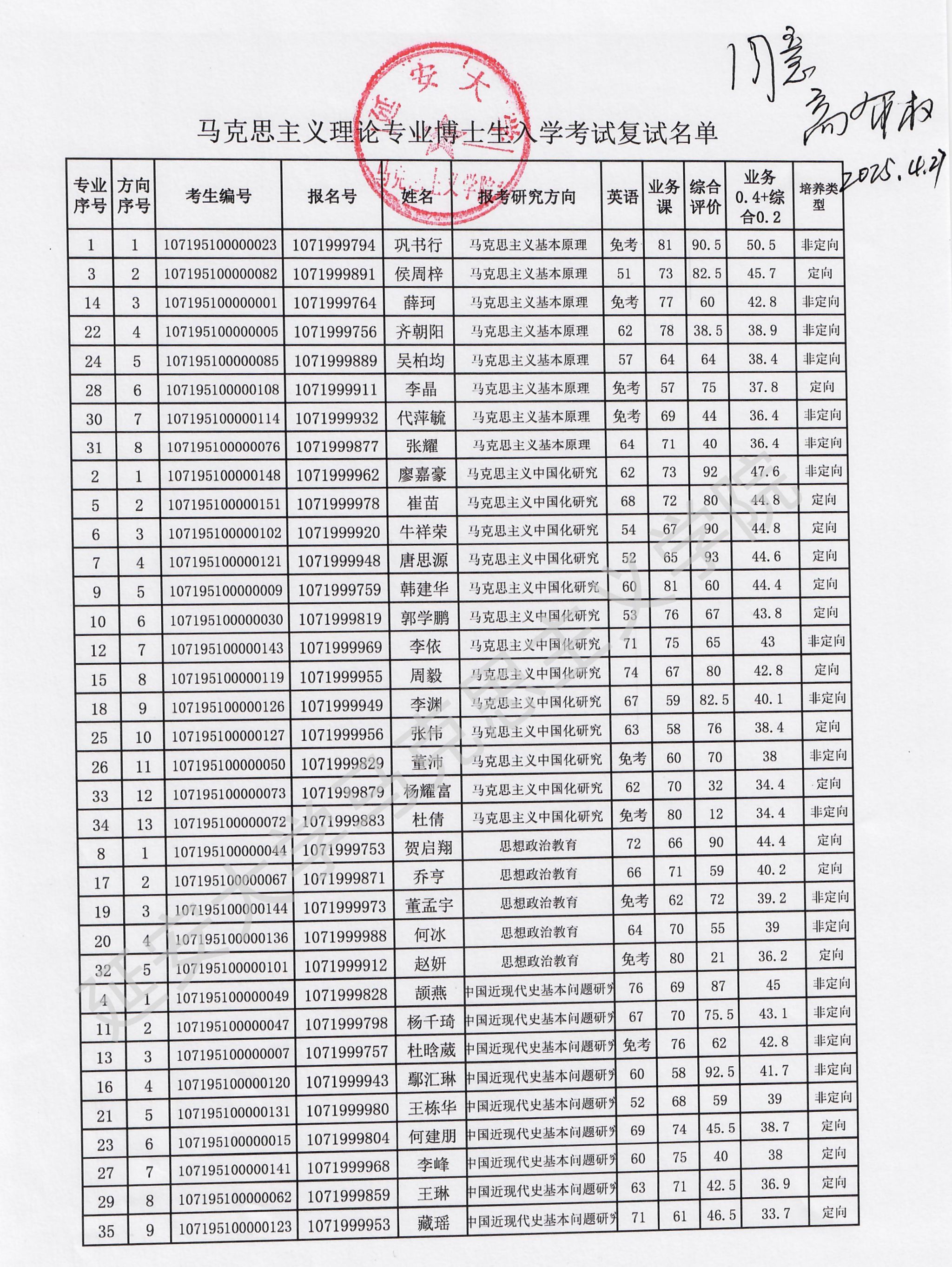 91热爆 马克思主义理论专业博士生入学考试专业课、综合评价与英语测试等考试已结束,现将考试成绩及复试名单公布如下。