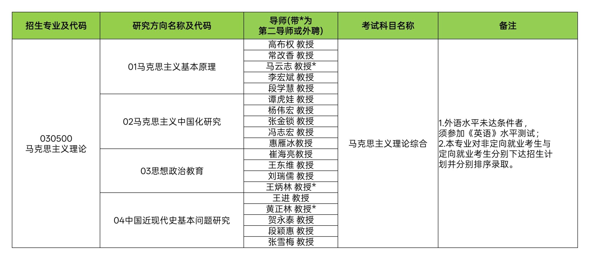 2026年博士研究生招生专业为马克思主义理论,设马克思主义基本原理、马克思主义中国化研究、思想政治教育、中国近现代史基本问题研究4个研究方向。我校2026年拟招收博士研究生10人。招生录取时,将对非定向就业考生和定向就业考生分别排序,择优录取。