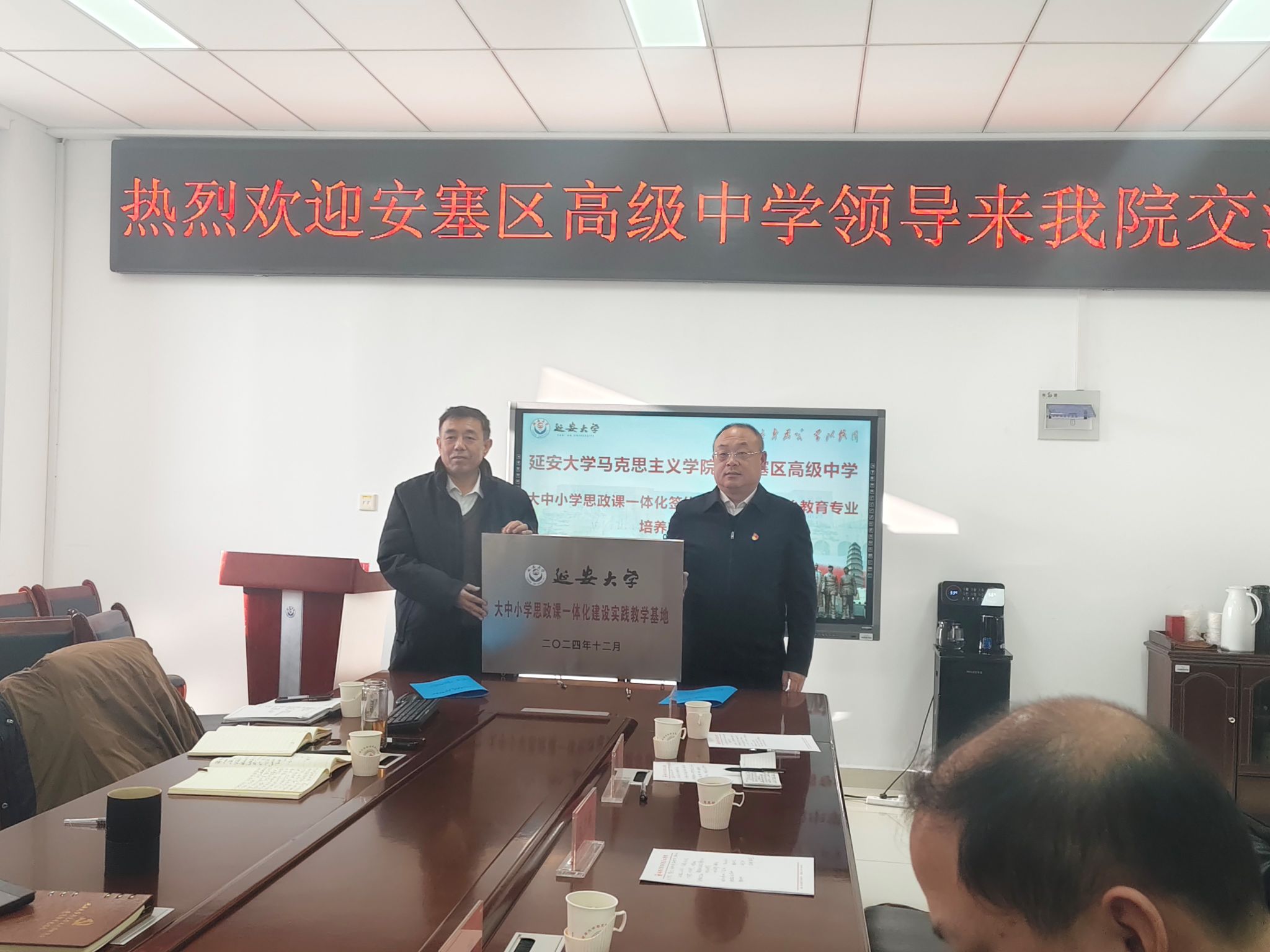 签约仪式结束后,双方就本科思想政治教育专业学生的培养目标和毕业要求进行了交流。会后,高志奇、谭亮亮带领安塞区高级中学领导参观了学院的楼宇文化墙、红色文献阅览室、党建活动室、成果展示室以及思政综合实验室。