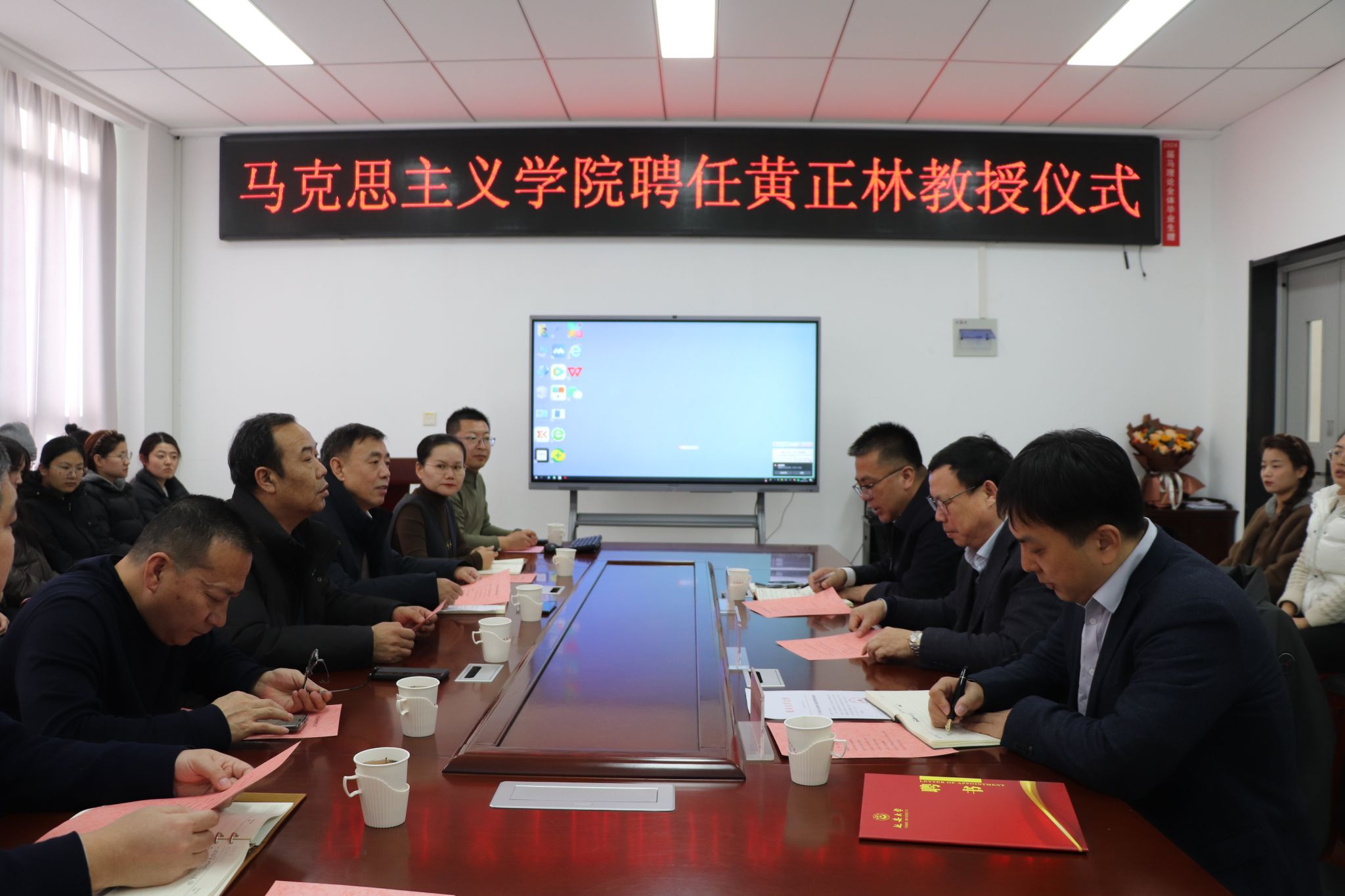 黄正林教授作了表态发言,他很高兴与延大马院结缘,感谢学校和学院对自己学术耕耘的认可,并希望和延大马院的老师们通力合作,努力取得新的更大的成绩。