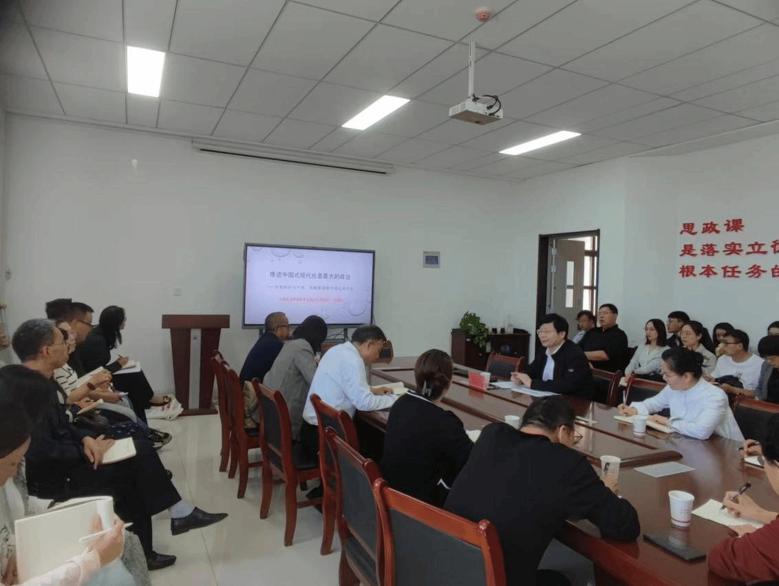 林建华教授以《推进中国式现代化是最大的政治——读懂新时代中国,关键要读懂中国式现代化》为题,聚焦“推进中国式现代化是最大的政治”这一论断,从为什么说推进中国式现代化是最大的政治、新时代以来的生动实践证明把中国式现代化作为最大的政治是完全正确的、怎样践行把推进中国式现代化作为最大的政治等三个方面展开阐述。林教授从历史逻辑、现实建构、未来旨归三个维度,揭示了“推进中国式现代化是最大的政治”中的道理、学理和哲理。林建华教授的报告逻辑缜密、思想深邃、深入浅出,许多观点和论证让人耳目一新。师生们纷纷表示,聆听林教授报告后受益匪浅,对其读书学习、治学研究和教书育人等各方面都启发良多。