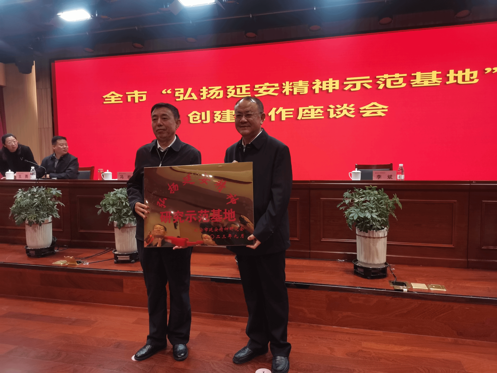 被命名为延安市“弘扬延安精神研究示范基地”,高布权院长代表学院领取了授牌。