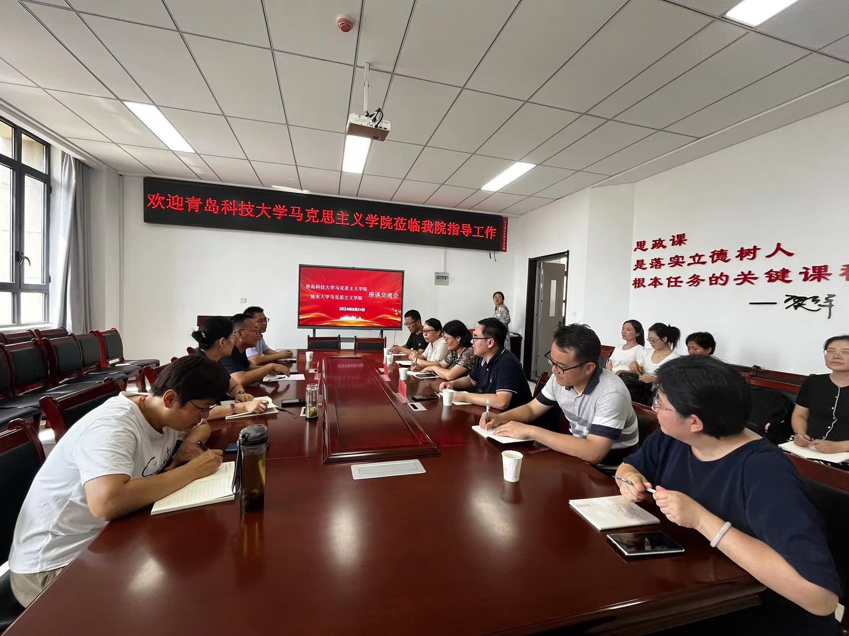 立足红色资源,开展教育教学和科研工作的基本情况。郭江龙着重介绍了青岛科技大学的基本情况和学科特色。接着两院围绕红色资源融入教学课堂、学科建设、区域特色、教学模式等相关问题进行充分的讨论交流。
