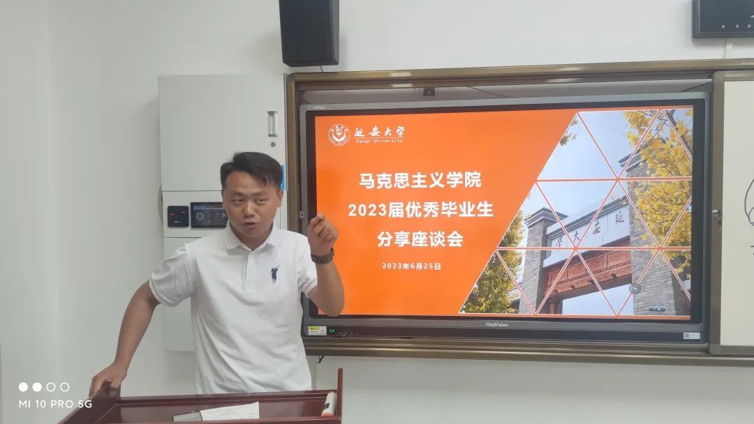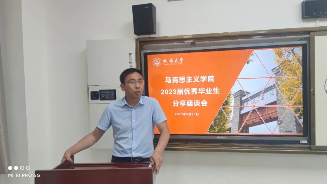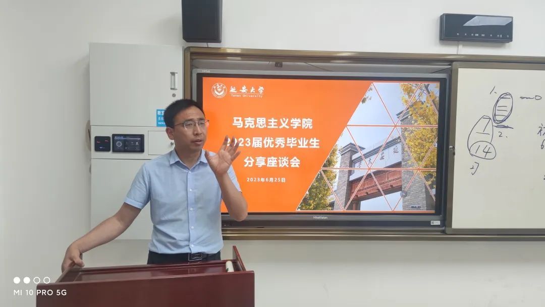 首先,赵老师肯定23届优秀毕业生取得的优异成绩,为马院学子树立了榜样,发挥了模范作用。并鼓励玉章20班,向榜样学习,刻苦学习,为自己负责,牢记奋斗是青春最亮丽的底色!