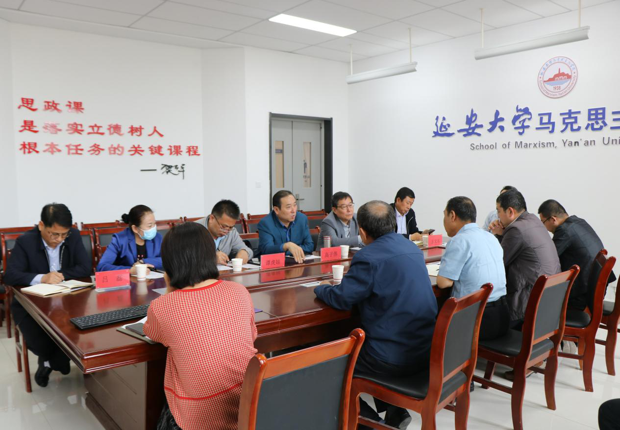 谭校长指出,要进一步突出、展现学院在利用延安红色文化、数据库、梁家河及革命旧址等优势资源中所取得的各类成果,更好发挥马院的辐射宣传带动作用。