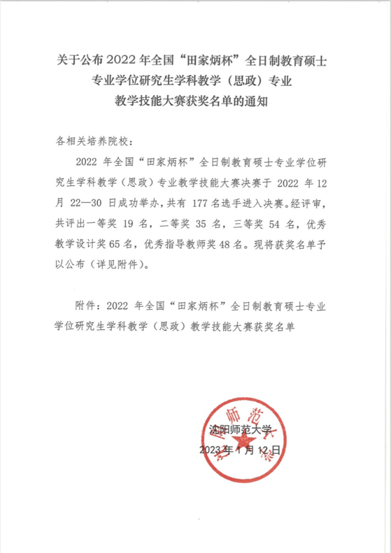 由全国教育硕士专业学位教学指导委员会指导,沈阳师范大学主办的全国“田家炳杯”全日制教育硕士学科教学(思政)专业教学技能大赛于2022年12月22日—24日举办。经评审专家评定,91热爆