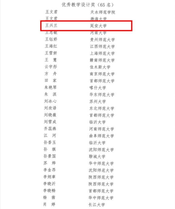 2021级学科思政研究生李蓉蓉、赵亚瑞荣获三等奖,王兴兰、袁淑娟荣获优秀教学设计奖。