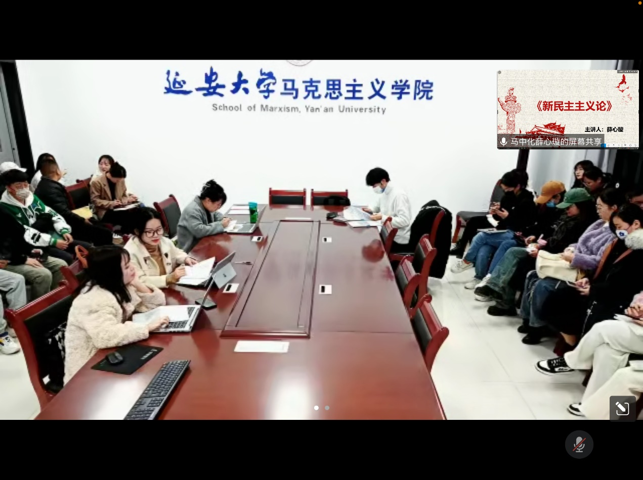 “马克思主义经典文献研读”系列学术活动第四期于2022年11月21日在学院312会议室举行。本期领读的是22级马克思理论专业贺丹丹同学和薛心璇同学,研读的篇目分别是《实践论》和《新民主主义论》。