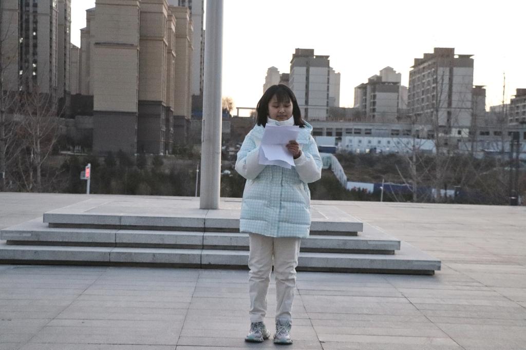 政教22袁嘉曼同学在国旗下做了演讲。她讲到作为新时代的延大学子,必须要有理想主义追求,志存高远,坚定对马克思主义的信仰;要有担当作为,担起青年责任,战胜风险挑战;要有吃苦耐劳的精神,团结奋斗的品质。号召同学们紧跟党的步伐,奋力谱写中国高质量发展新篇章,让青春在全面建设社会主义现代化国家的火热实践中绽放绚丽之花。