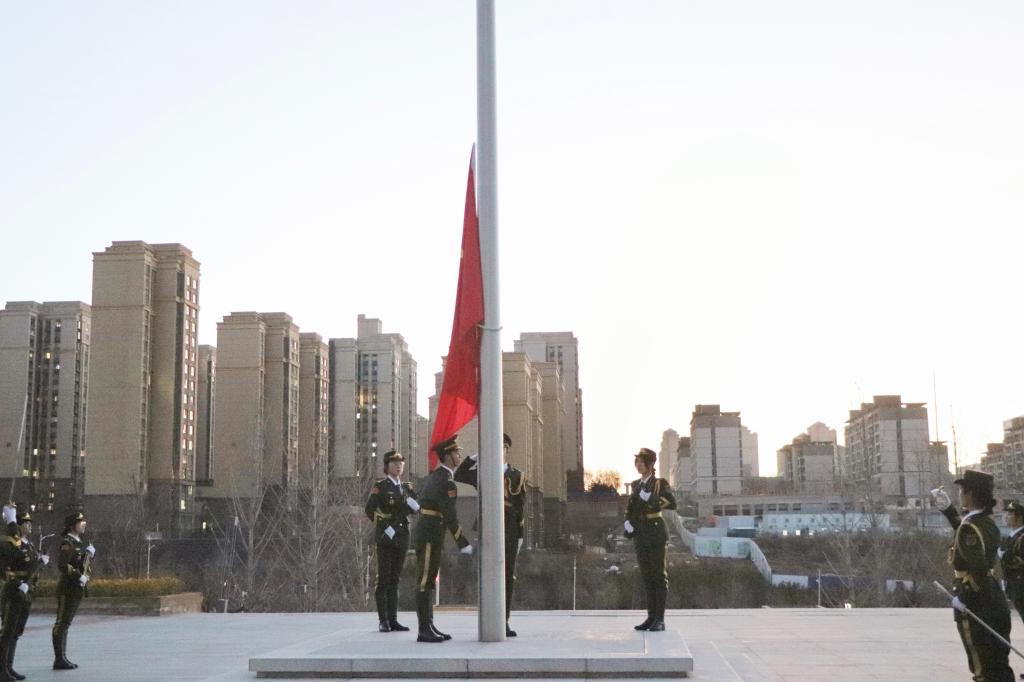 于2022年11月21日早晨在新校区图书馆门前广场举行了升旗仪式。学院党委常务副书记张彬老师以及学院大一、大二、大三、研一全体学生参加了升旗仪式。升旗仪式由党委副书记赵海龙老师主持。