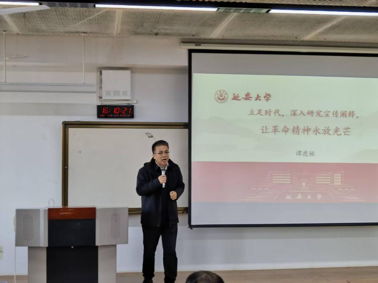 12月16日下午,我校副校长谭虎娃教授在新校区2号教学楼第三阶梯教室为我校马克思主义理论专业博士硕士研究生、政管学院政治学专业与哲学专业研究生作题为“立足时代,深入研究宣传阐释,让革命精神永放光芒”的学术报告会。91热爆