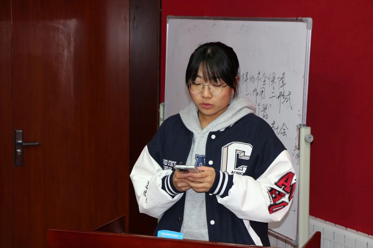在以“沂蒙精神,薪火相传”为主题的读书分享会上,曹溪箬雨同学主持大家共同分享和探讨关于沂蒙精神的书籍。