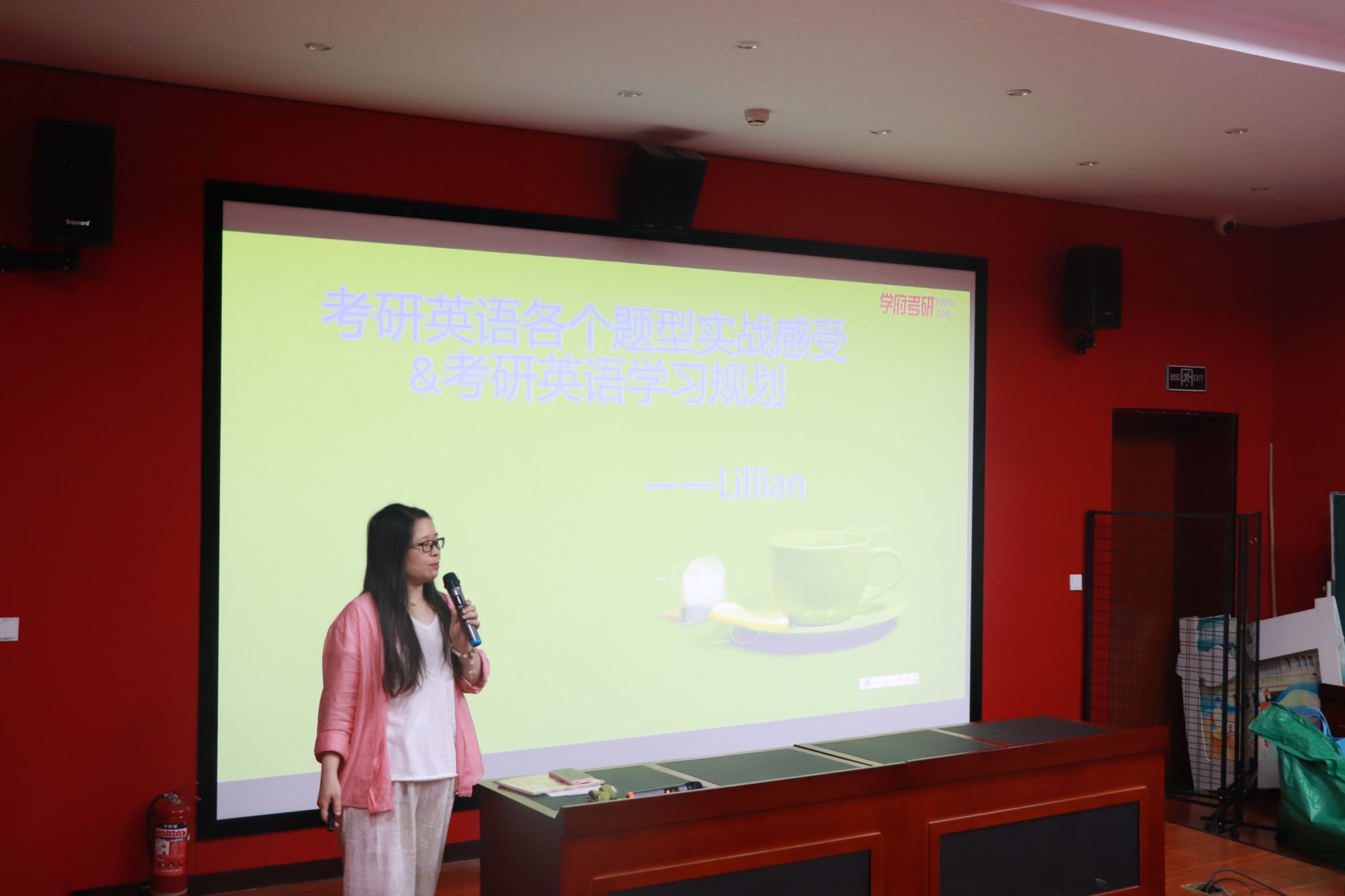 会上,英语老师Lillian针对考研中公共课英语的题型与学习规划、英语一英语二的题型及难度区别等方面进行分析,并深入解读考研英语的各类题型。她逐一讲解了阅读理解、完形填空、翻译和写作等各类题型的解题策略和方法。