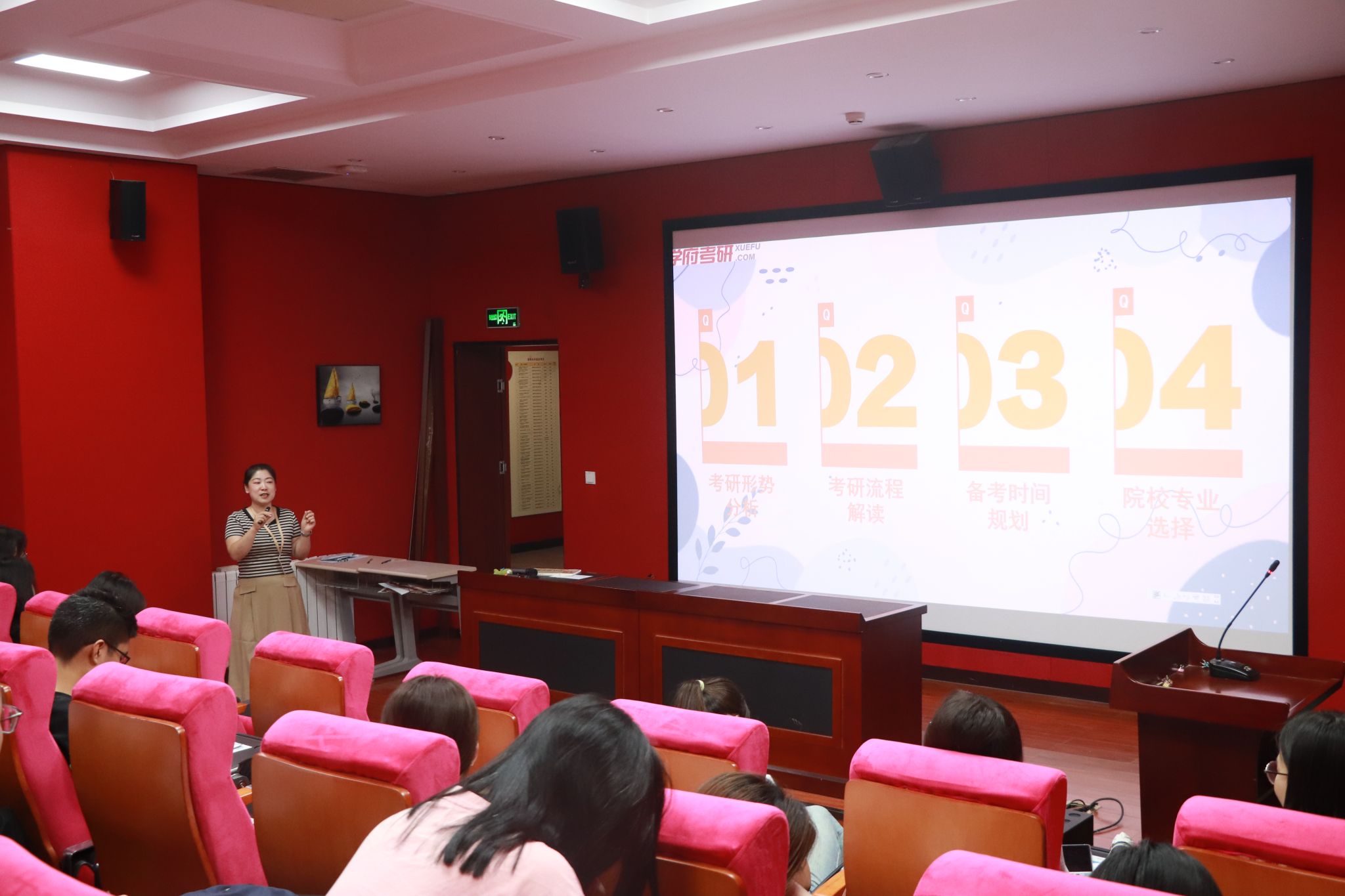 针对考研择校和时间安排,主讲老师分别从考研形势分析、考研流程解读、备考时间规划、院校专业选择四个方面进行讲解,她强调,考研中院校的选择需要考生全面了解自己目标院校的招生政策、录取比例及复试要求。在确定目标以后,结合自身情况制定个性化的学习规划。专业课的学习不是一蹴而就的,要肯吃苦、肯奋斗,耐得住寂寞,坐得住冷板凳。