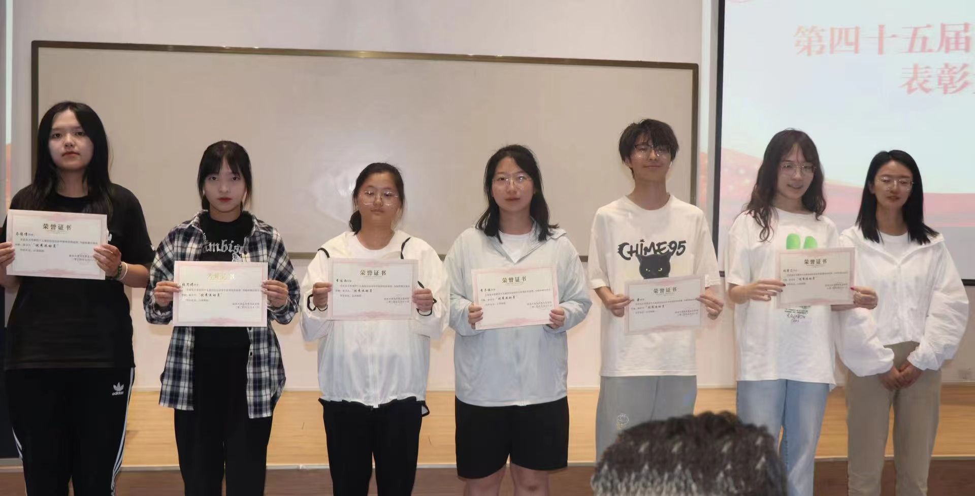 第五项,由贺宁宁老师、苗玉园老师和郭忠義老师为获得本次运动会最佳运动员、优秀运动员、优秀教练员、优秀工作人员和优秀志愿者的同学进行颁奖。