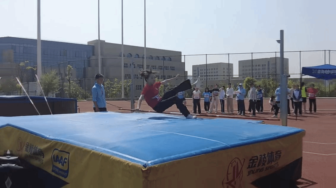 跳高:在阳光的照耀下,跳高的比赛场地格外地辉煌,运动员们,用那矫健的身躯,冲刺着一个又一个的高度。