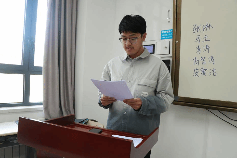 张艺巍、毛梦新等同学宣读选举办法,介绍本次选举规则及相关工作情况,选举办法经全体参会学生表决通过。