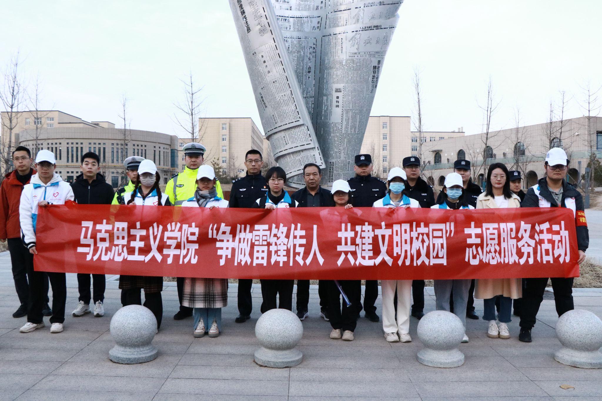 根据学校党委的工作安排,会同保卫处举行了“学习雷锋精神 传播模范事迹 争做雷锋传人”系列活动之“争做雷锋传人 共建文明校园”启动仪式。