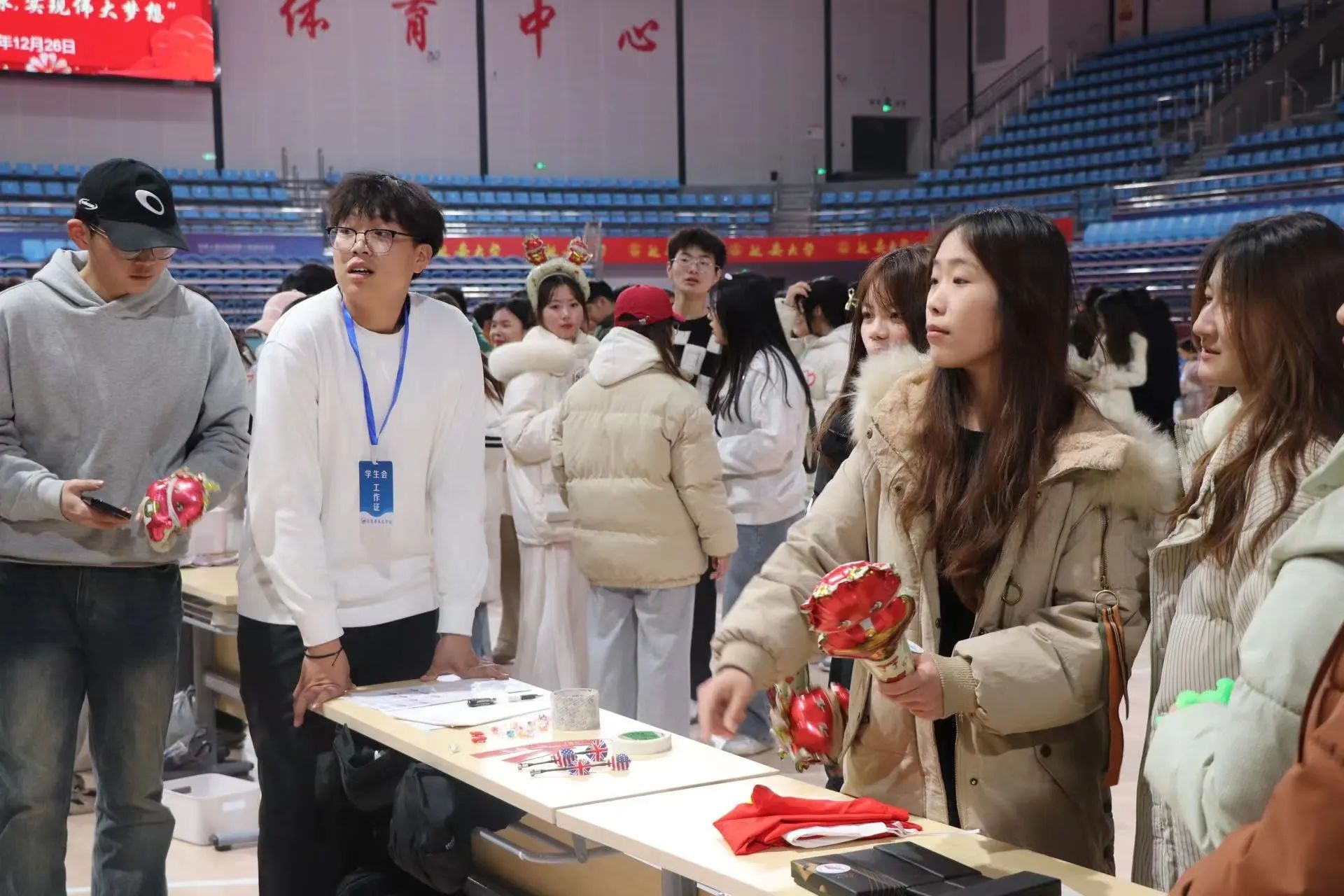 “同心圆梦”摊位:即套圈,套中2~3个小玩具可以获得其中一个。同学们踊跃参与,享受游戏的乐趣,放松身心来缓解学习压力和紧张情绪。