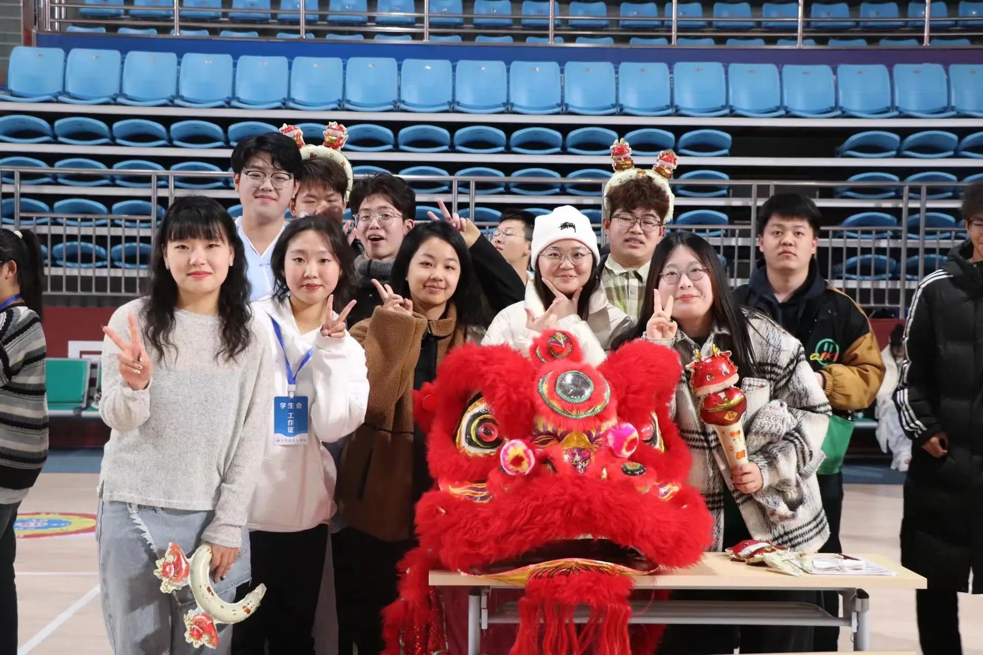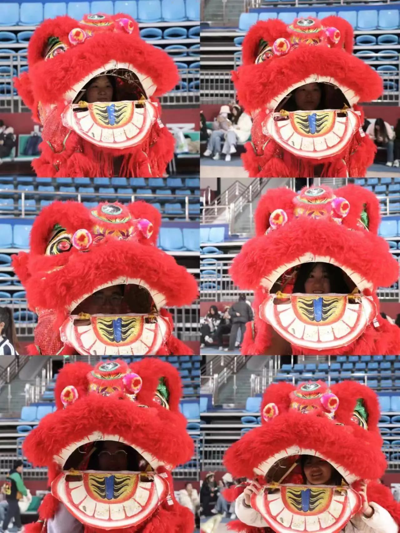 舞狮打卡:同学们积极与狮头合影,并在朋友圈打卡。