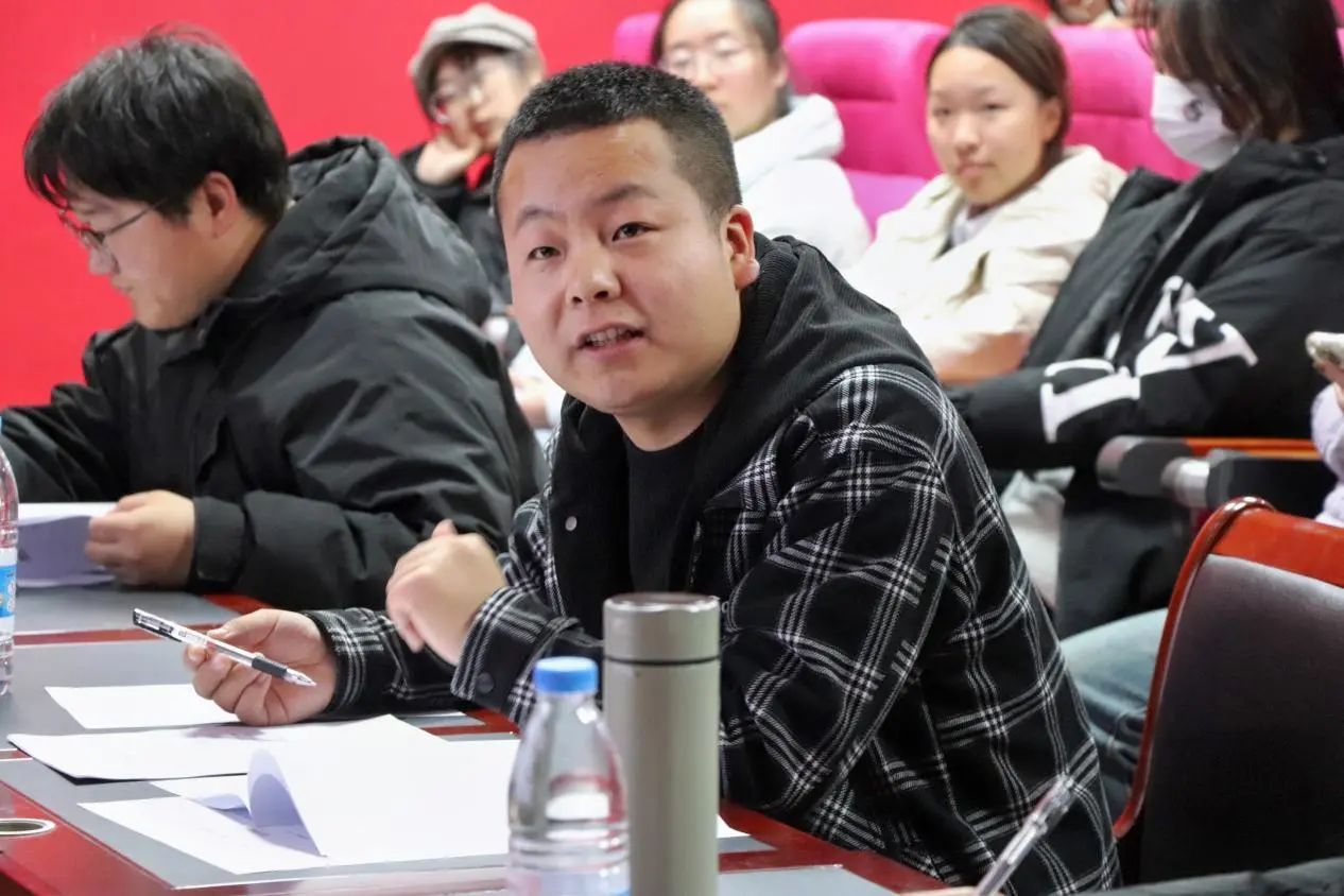 最后,田满园学长就此次比赛总结并对我们寄语道:“一、四年时间转瞬即逝,要树立明确的目标和规划。二、有目标后该怎样行动,要把理论转化为实践,将目标转化为现实。三、要有毅力,毅力是支撑行动的精神动力。四,不管是面对考研还是考公还是求职,要有耐心。”田满园的一席话对于我们同学的学习和职业规划有了很大的启发。