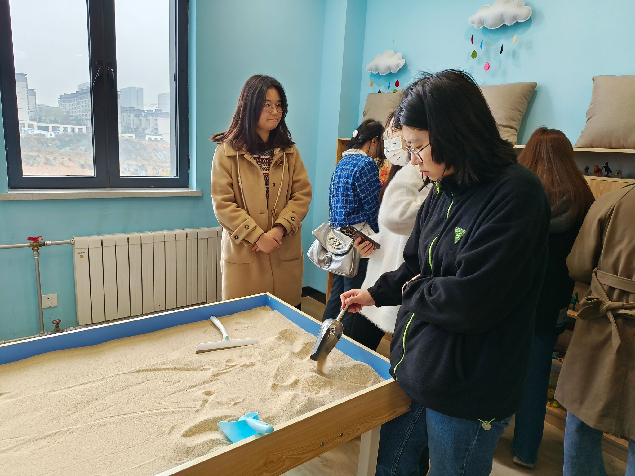随后,高雨薇、郭家奇老师带领同学们有序参观了校心理咨询中心。