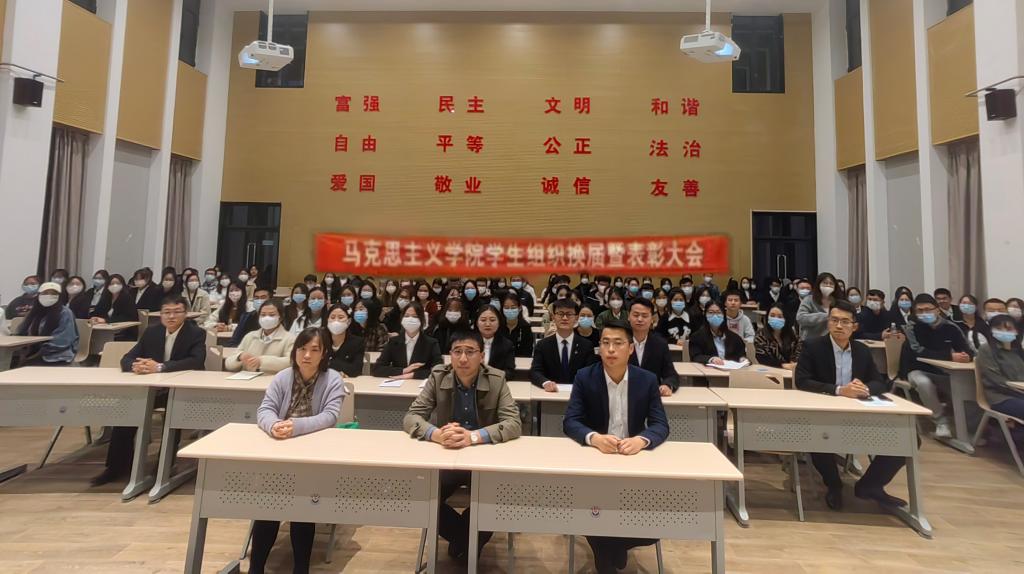 圆满举行了学生组织换届暨表彰大会。党委副书记赵海龙老师、党委组织员闫莉莉老师参加了本次大会。大会由团委书记郭忠義老师主持,共分为七项进行。