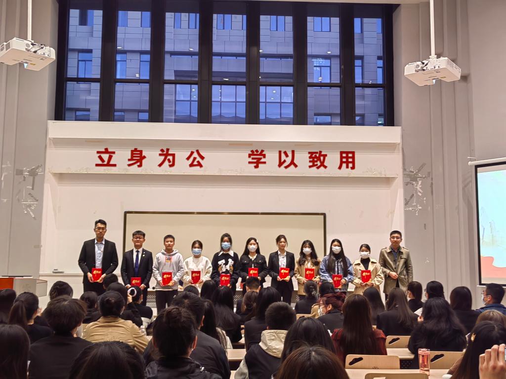 2021-2022年度优秀学生干部表彰名单,学院党委副书记赵海龙老师、党委组织员闫莉莉老师和团委书记郭忠義老师分别为优秀学生干部颁发荣誉证书。