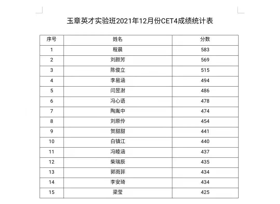 领导高度重视,班主任合理规划,老师们积极为同学们在英语学习存在的问题进行解答;玉章20班全班同学积极参与、全力备考。经2022年2月24日四级成绩公布后,据统计,本次共有18人参考,15人过关,通过率高达83%。