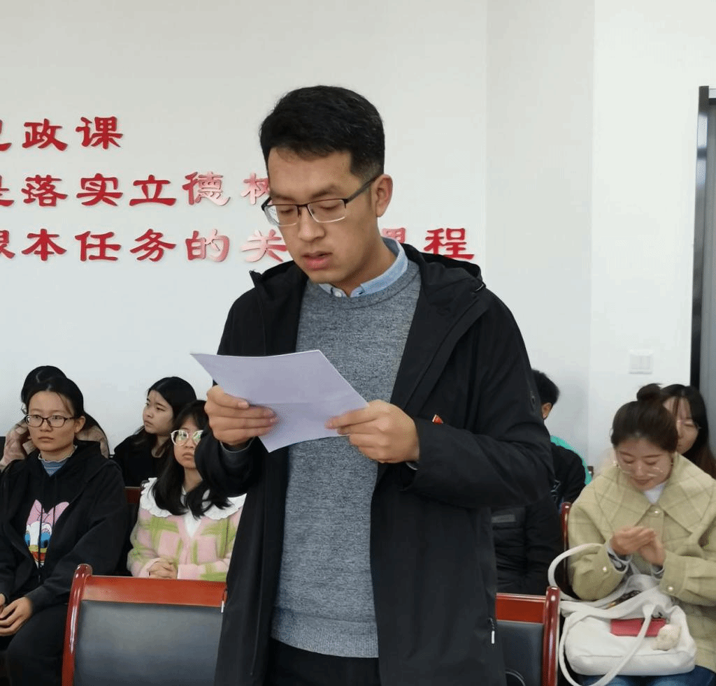 学院党委副书记赵海龙老师讲话。首先,党委副书记赵海龙老师对本次如期转正的9名预备党员表示祝贺,并对他们提出具体要求:一是要求转正党员同志不仅要形式上入党更需要在思想上真正入党,不断提升自身的党性修养;二是要继续加强理论学习,提高自己的理论水平,增强服务意识,严格要求自己,在同学们当中起到模范带头作用。三是坚定理想信念,树立共产主义远大理想并不断为之努力奋斗,争做新时代有为青年。
