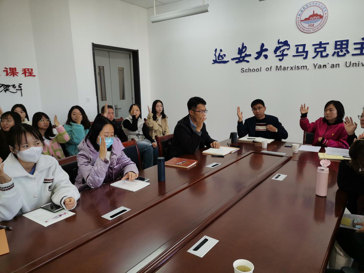 由马中化21廖嘉豪同志领学习近平总书记在庆祝中国共产党成立100周年大会上的讲话精神,由思政21叶少文同志领学习近平总书记来陕考察重要指示重要讲话精神,由基本问题21王鑫同志领学习近平总书记在纪念长征胜利80周年大会上的讲话精神。