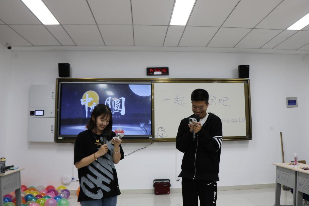 中秋晚会在一片热闹、欢快的氛围中拉开序幕。活动伊始,班委们向每一位同学分发了暖心的中秋礼物。礼轻情意重,小礼物给大家带来了温暖与感动。